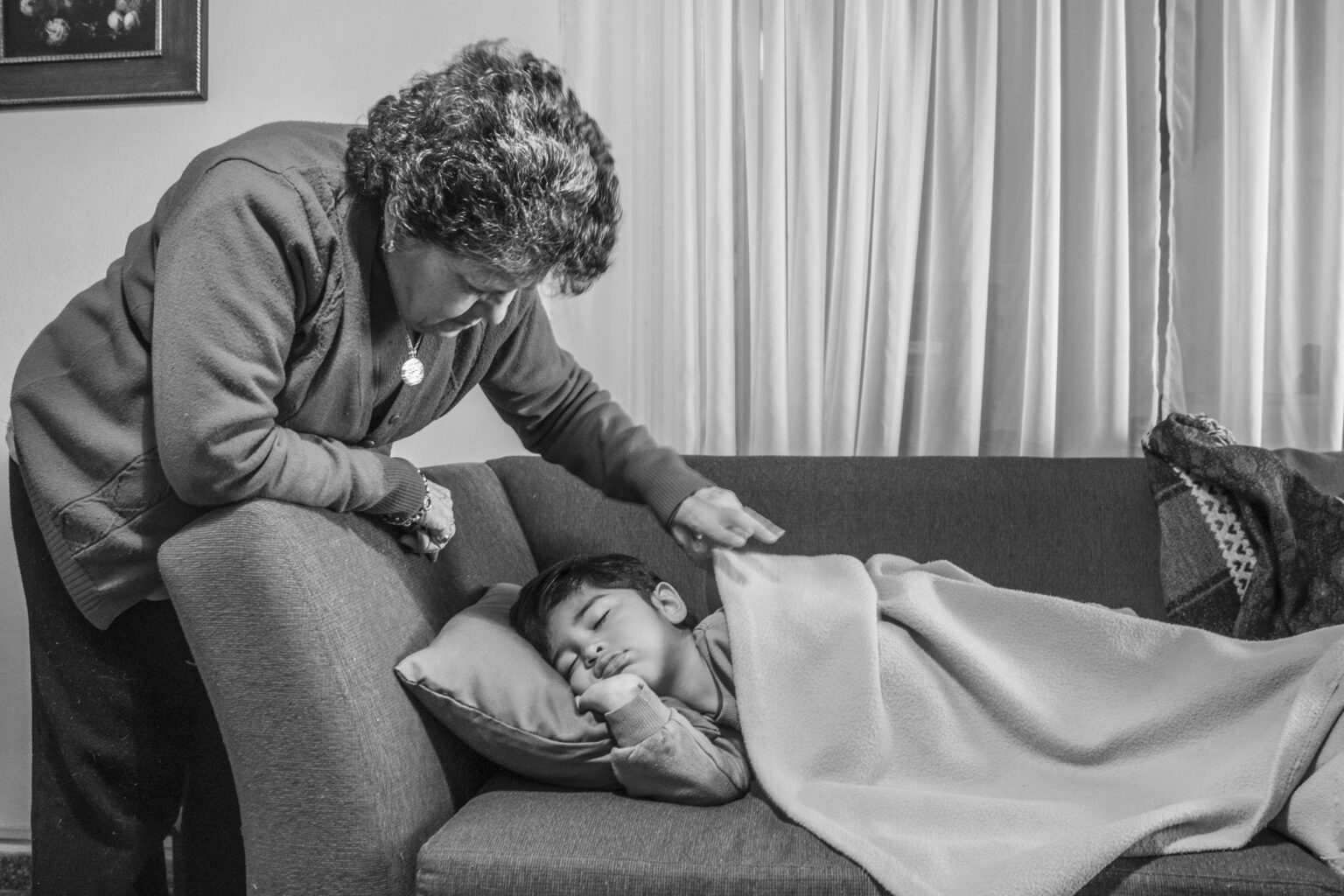 Abuela arropa a su nieto durmiendo -Invierno de 2017
