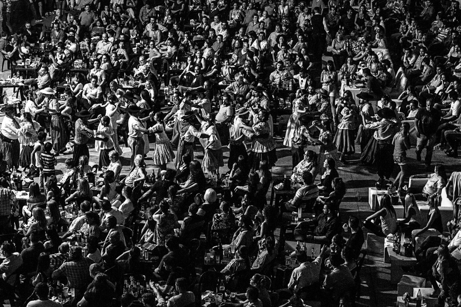Un grupo de parejitas bailan en medio del mar de gente, espectadores en su gracia.