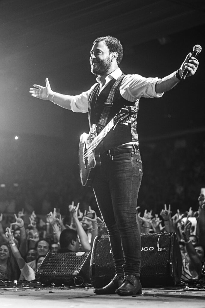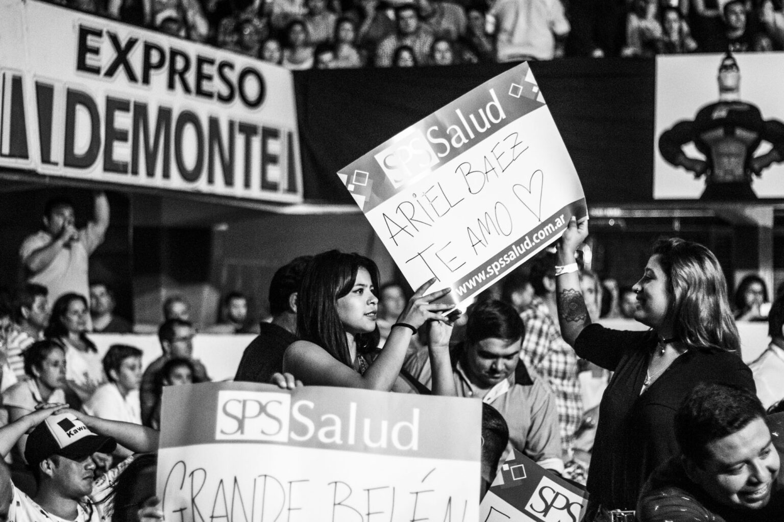 Lucas Sugo posa con sus fans de fondo en el cierre de su show.