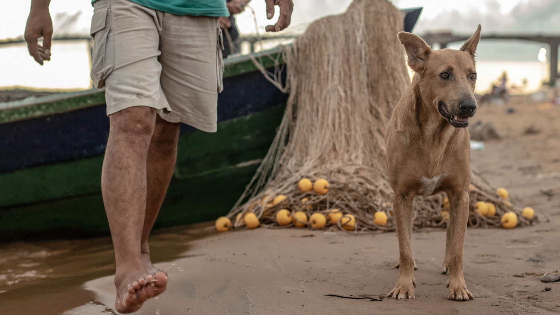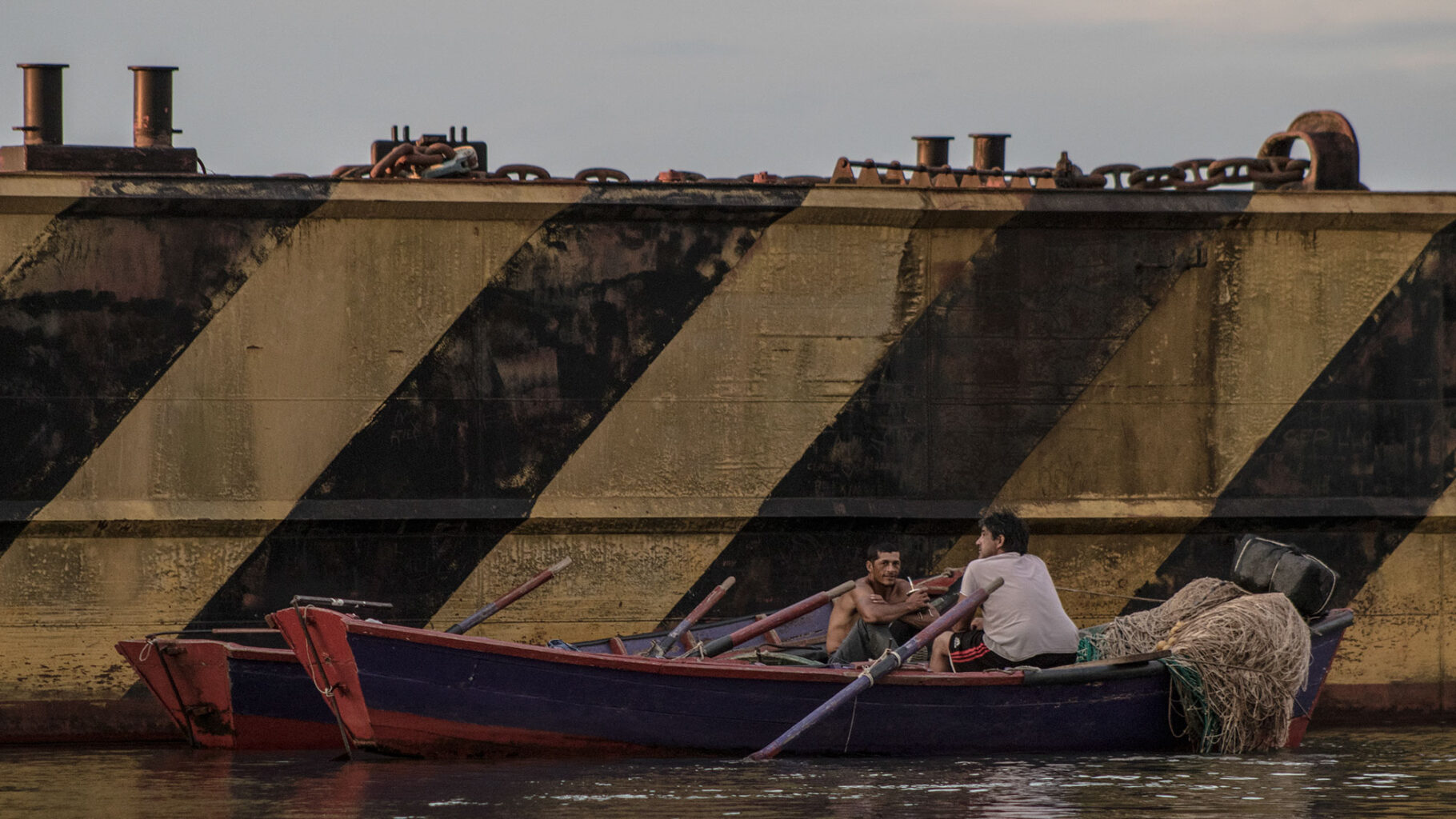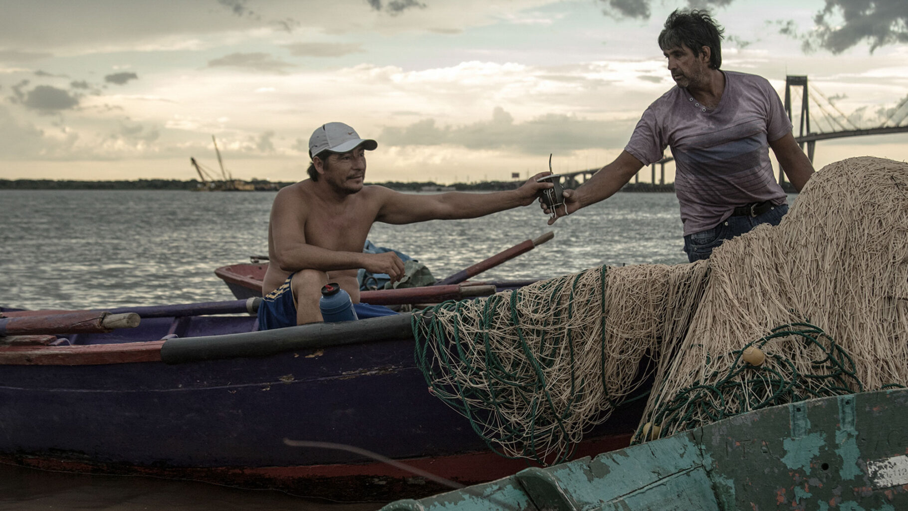 Una canoa a motor se desplaza en el Río Paraná. Su fragilidad contrasta con las inmensas embarcaciones ancladas en la zona portuaria de la ciudad de Corrientes.Tanto cuando hace frío como cuando el calor quema, el mate -infusión tradicional argentina- está presente entre los pescadores. Ayuda a acortar el tiempo, engaña al estómago cuando hay hambre y afianza el compañerismo.Los pescadores llevan a sus niños a la costa y éstos aprenden a desenredar y reparar los extensos mallones.Corrientes posee kilómetros de costa. Las canoas también son usadas como medio de transporte de una punta de la ciudad a la otra.Mientras aguardan para recoger las redes, los pescadores conversan durante una tarde calurosa, al cobijo de una de las defensas del Puente Interprovincial «Manuel Belgrano».El mallón se arroja al río y tras varias horas se lo recoge. Los pescadores usan bloques de poliestireno expandido para marcar las zonas donde los han dejado.Los perros aguardan en la playa la llegada de los pescadores. Reciben afecto y por supuesto, algo de comida.Desde pequeños, los hijos de los pescadores del Paraná, están familiarizados con el oficio de sus padres.Parece el mar, pero es el Paraná embravecido con la tormenta. Sin equipamiento de seguridad, los malloneros no se arriesgan a salir los días malos.