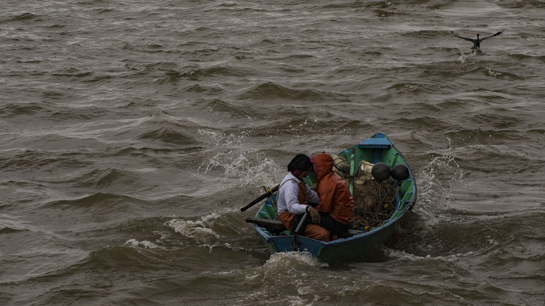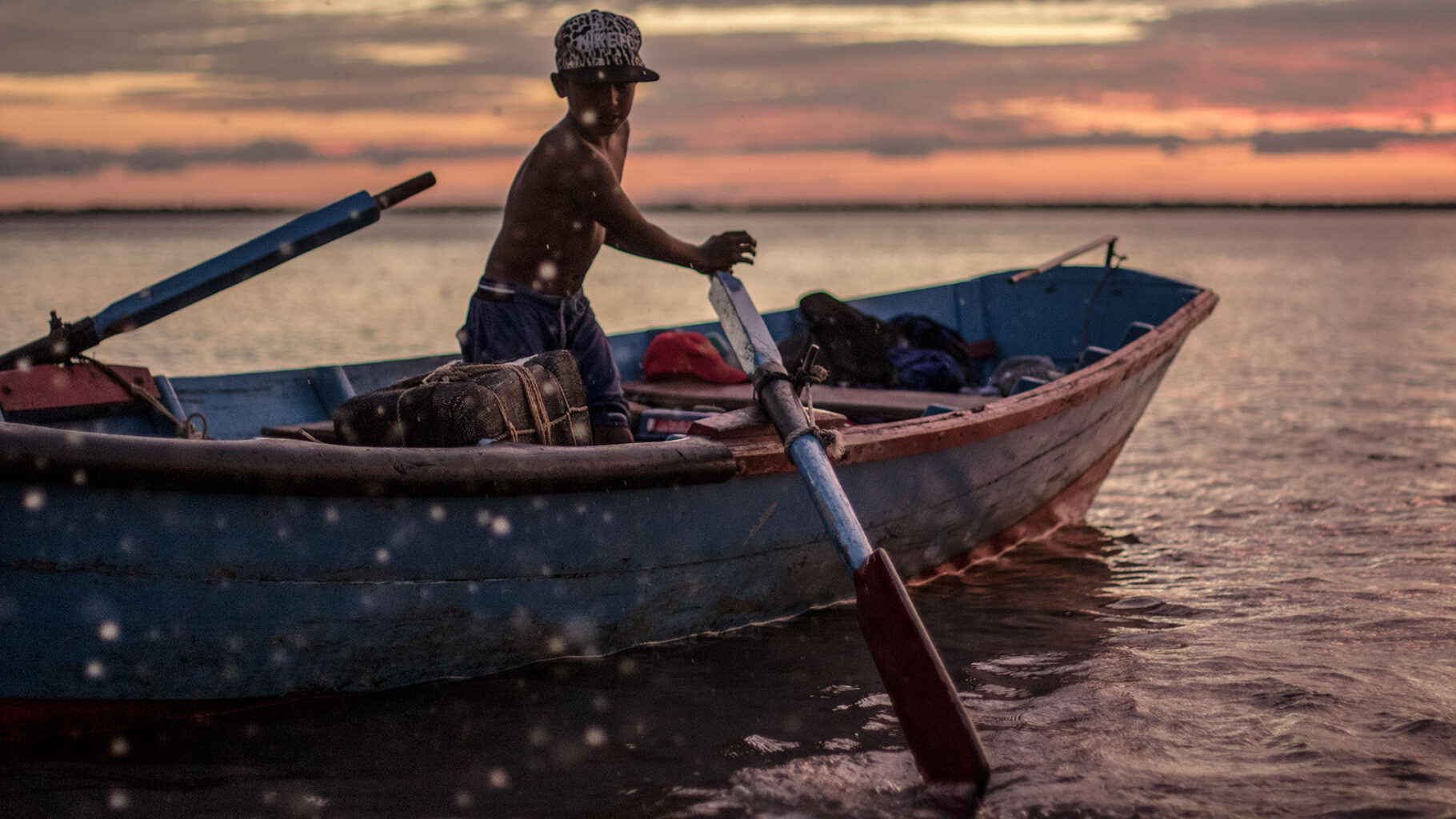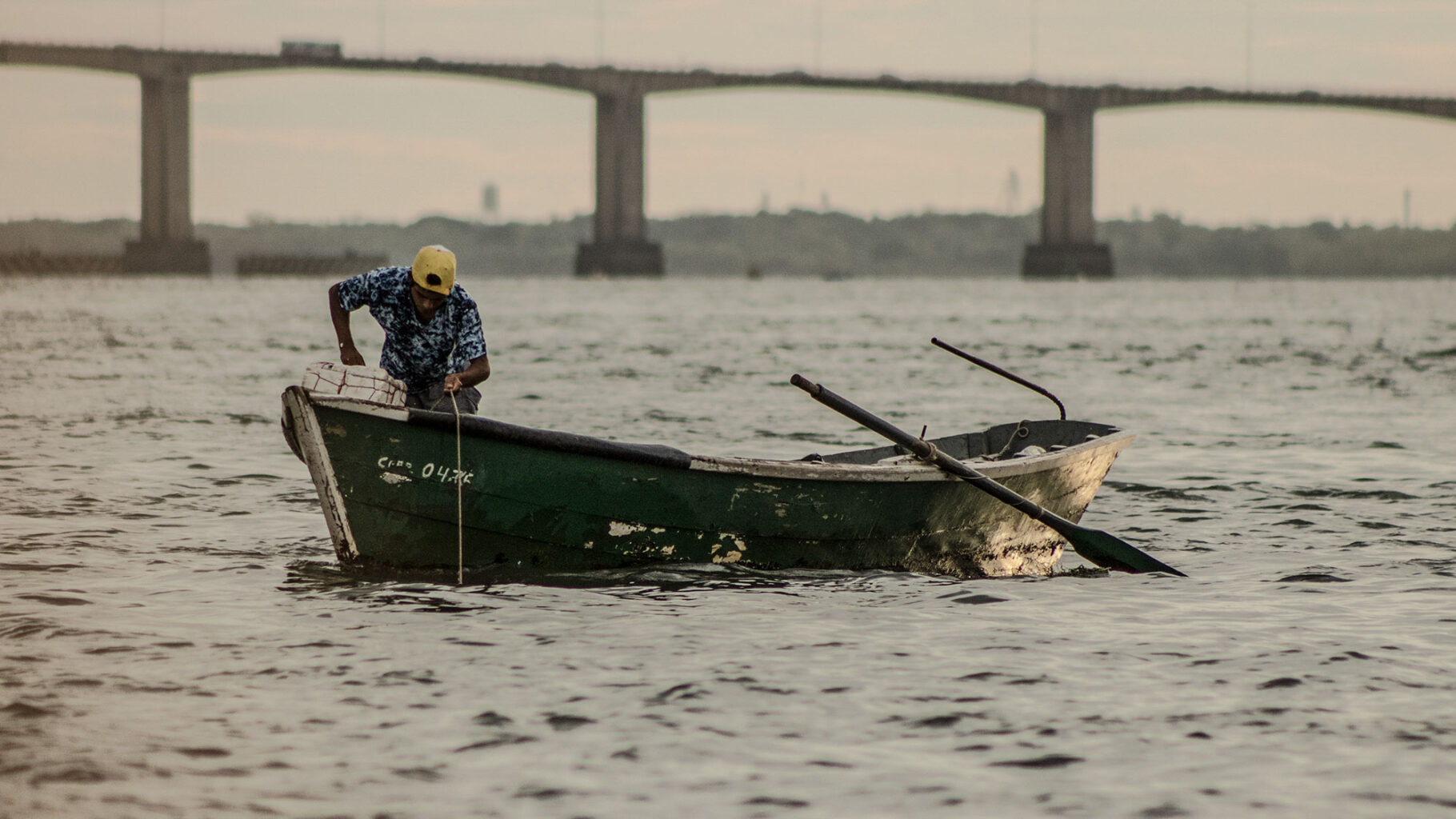 Una canoa a motor se desplaza en el Río Paraná. Su fragilidad contrasta con las inmensas embarcaciones ancladas en la zona portuaria de la ciudad de Corrientes.Tanto cuando hace frío como cuando el calor quema, el mate -infusión tradicional argentina- está presente entre los pescadores. Ayuda a acortar el tiempo, engaña al estómago cuando hay hambre y afianza el compañerismo.Los pescadores llevan a sus niños a la costa y éstos aprenden a desenredar y reparar los extensos mallones.Corrientes posee kilómetros de costa. Las canoas también son usadas como medio de transporte de una punta de la ciudad a la otra.Mientras aguardan para recoger las redes, los pescadores conversan durante una tarde calurosa, al cobijo de una de las defensas del Puente Interprovincial «Manuel Belgrano».El mallón se arroja al río y tras varias horas se lo recoge. Los pescadores usan bloques de poliestireno expandido para marcar las zonas donde los han dejado.Los perros aguardan en la playa la llegada de los pescadores. Reciben afecto y por supuesto, algo de comida.Desde pequeños, los hijos de los pescadores del Paraná, están familiarizados con el oficio de sus padres.Parece el mar, pero es el Paraná embravecido con la tormenta. Sin equipamiento de seguridad, los malloneros no se arriesgan a salir los días malos.